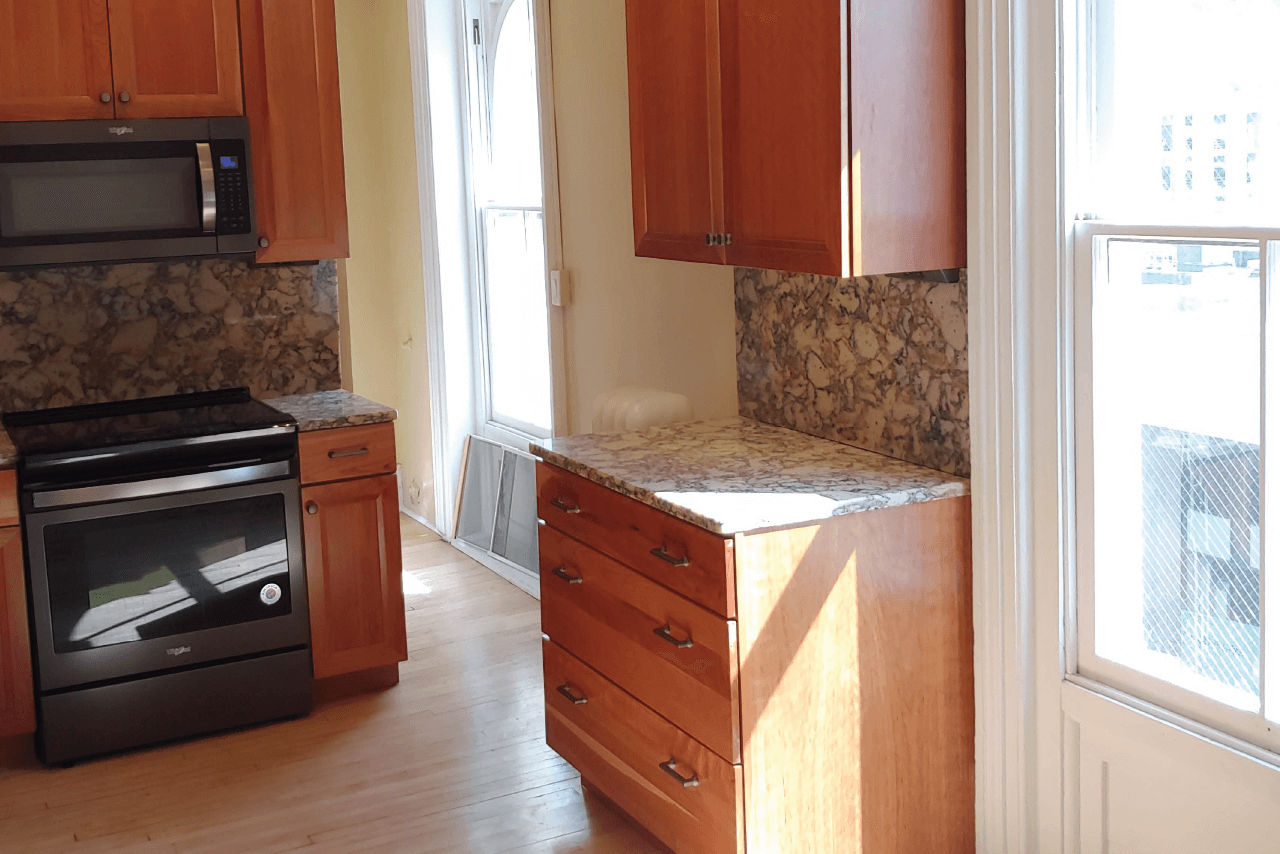 Available: 5/1/2022 | Minimum Lease: 1 Year. Amenities: Recently Completely Renovated Large New Elegant Kitchen. New Craft Maid Natural Solid Cherry Wood Cabinets, New Gunmetal Finger Print Proof Double Door Refrigerator, New Gunmetal Finger Print Proof 5 Burner Electric Cooktop & Oven, Microwave, Dishwasher, Composite Black Granite Two Bowl Sink & Insinkerator Disposal, New Grohe Faucet, All New Caesar Stone Counter-Tops with Full Height Back-splash, Brand New Full Size Stacked Washer/Dryer, Gorgeous Hardwood Maple Floors, East Hill Sunrise and Commons View. Lots of Sunlight! Faces South and East with many glorious tall oval arched windows on East & South sides. Very light and bright. Large Living Room. Each Bedroom has a sliding door closet, closet in the connecting hall also. Large Closet in the Kitchen. Single Bathroom with Large Tiled Shower.