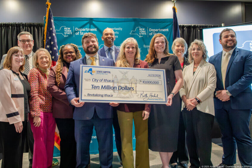 The City of Ithaca has been awarded $10 million through New York State’s Downtown Revitalization Initiative, marking a major milestone in the City’s ongoing effort to strengthen its downtown core, support local businesses, expand housing opportunities, and invest in public spaces. The award was announced as part of Round 9 of the Downtown Revitalization Initiative, a highly competitive statewide program that supports transformative, community driven economic development projects.