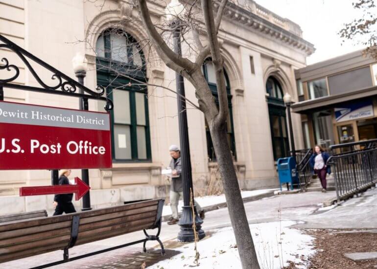 The U.S. Post Office in downtown Ithaca is a full-service U.S. Post Office