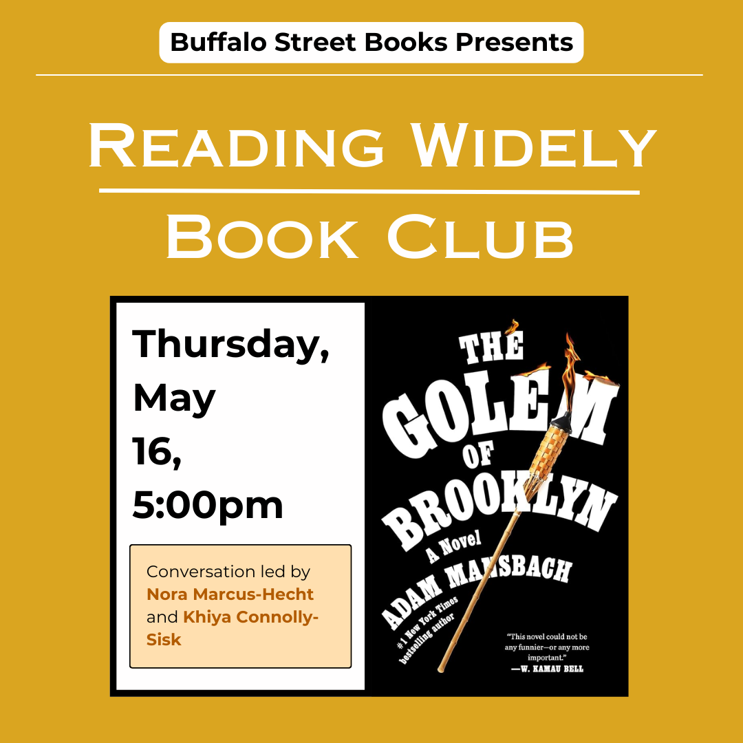 For this month’s Reading Widely Book Club, Buffalo Street Books’ Events Coordinator Nora will be leading conversation alongside Khiya Connolly-Sisk on Adam Mansbach’s most recent novel, The Golem of Brooklyn.