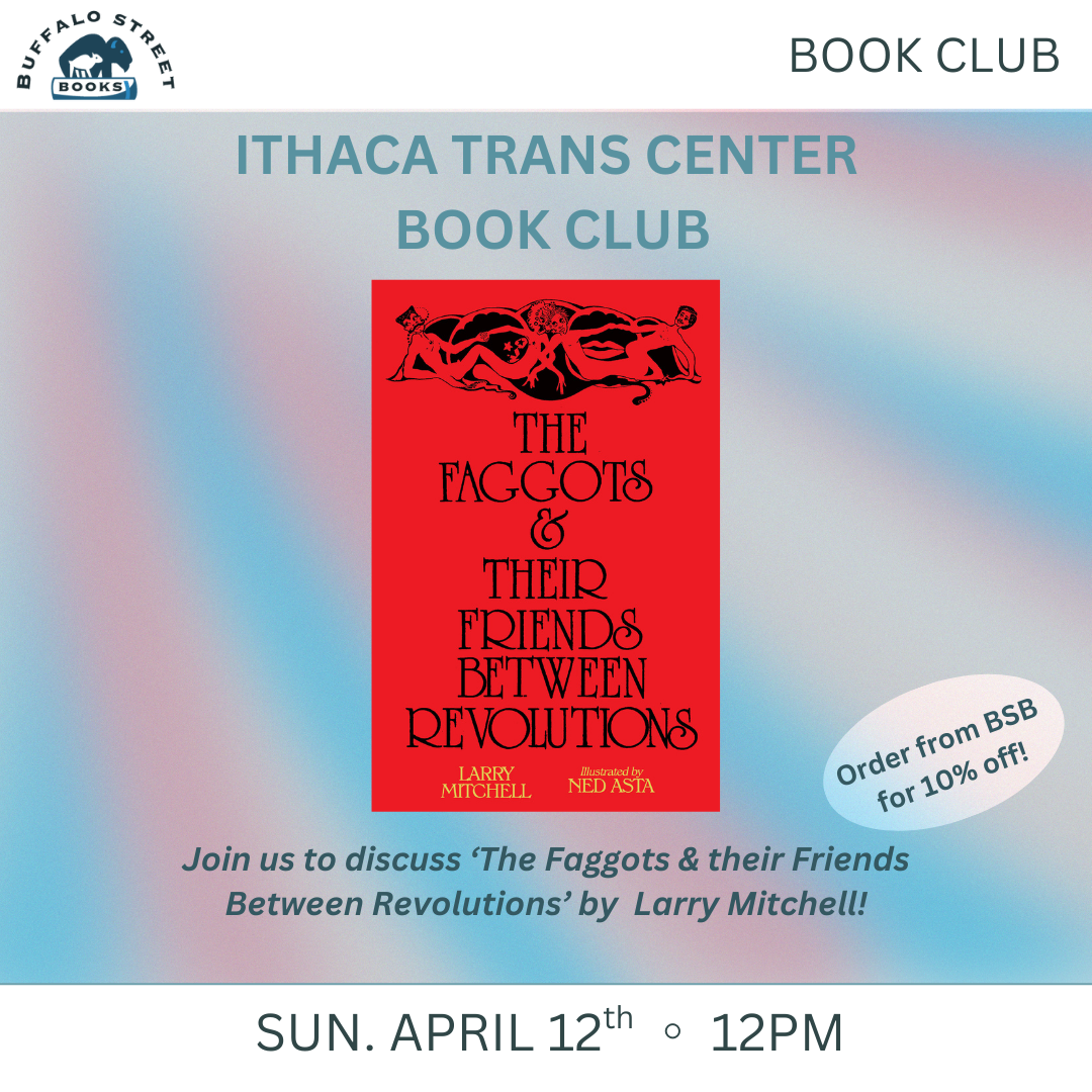 Join us to discuss โ€˜The Faggots & Their Friends Between Revolutionsโ€™ by Larry Mitchell! A book club hosted by the Ithaca Trans Center all book club books have a 10% discount