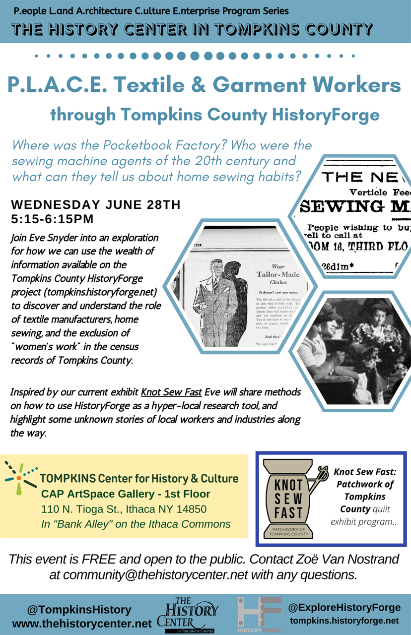 History Center of Tompkins County 110 N Tioga Street, Ithaca, New YorkWHERE HistoryForge Transcription sessions happen every other Saturday from 11am-1pm until June 17th, 2023. They happen in-person at the Tompkins Center for History & Culture on the Ithaca Commons usually in the Second Floor Conference Room. Be sure you're on the email list to stay in the loop! APPLICATION REQUIRED for new volunteers - We need to do some behind-the-scenes ... Read More
