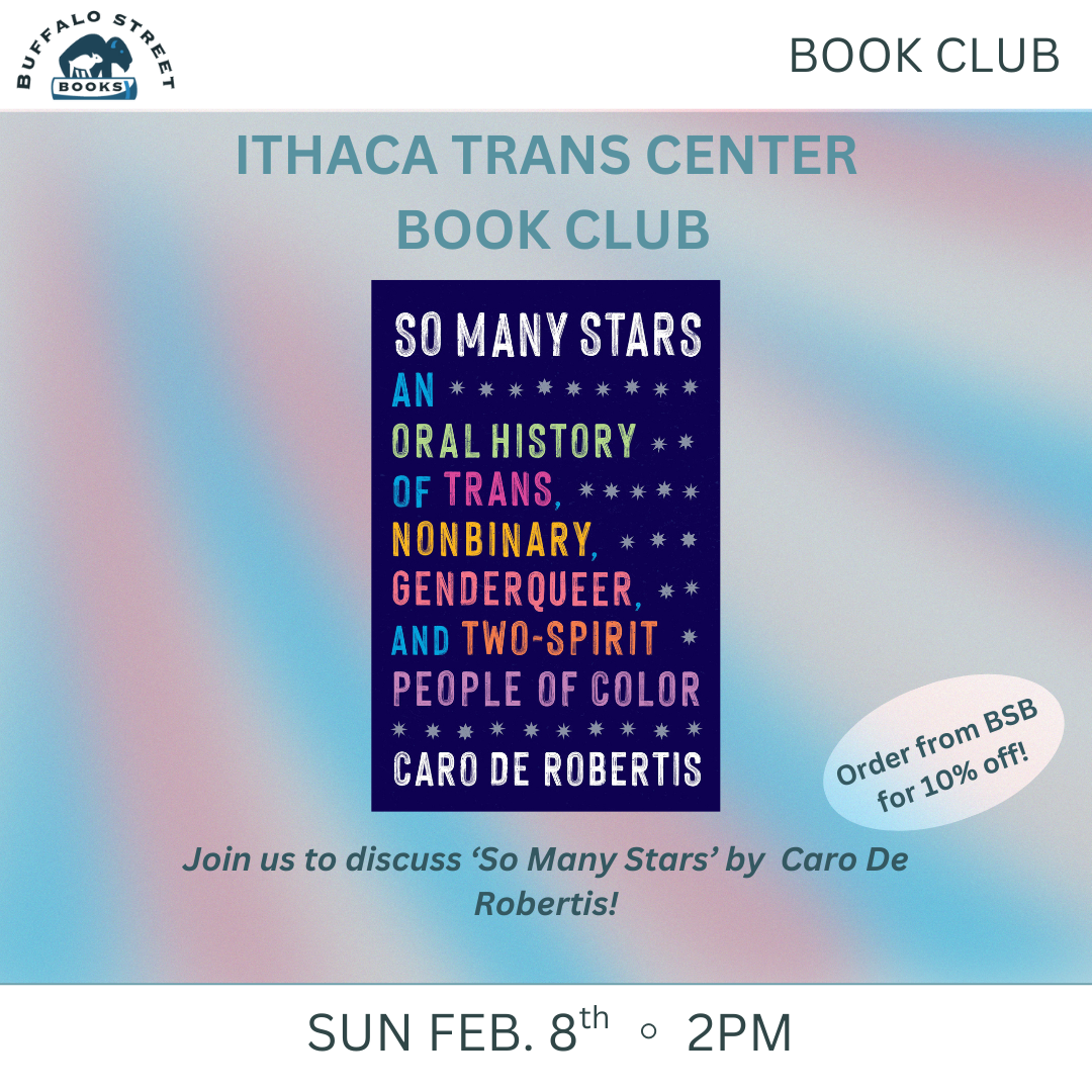 Join us to discuss ‘So Many Stars’ by Caro De Robertis! A book club hosted by the Ithaca Trans Center All book club books have a 10% discount