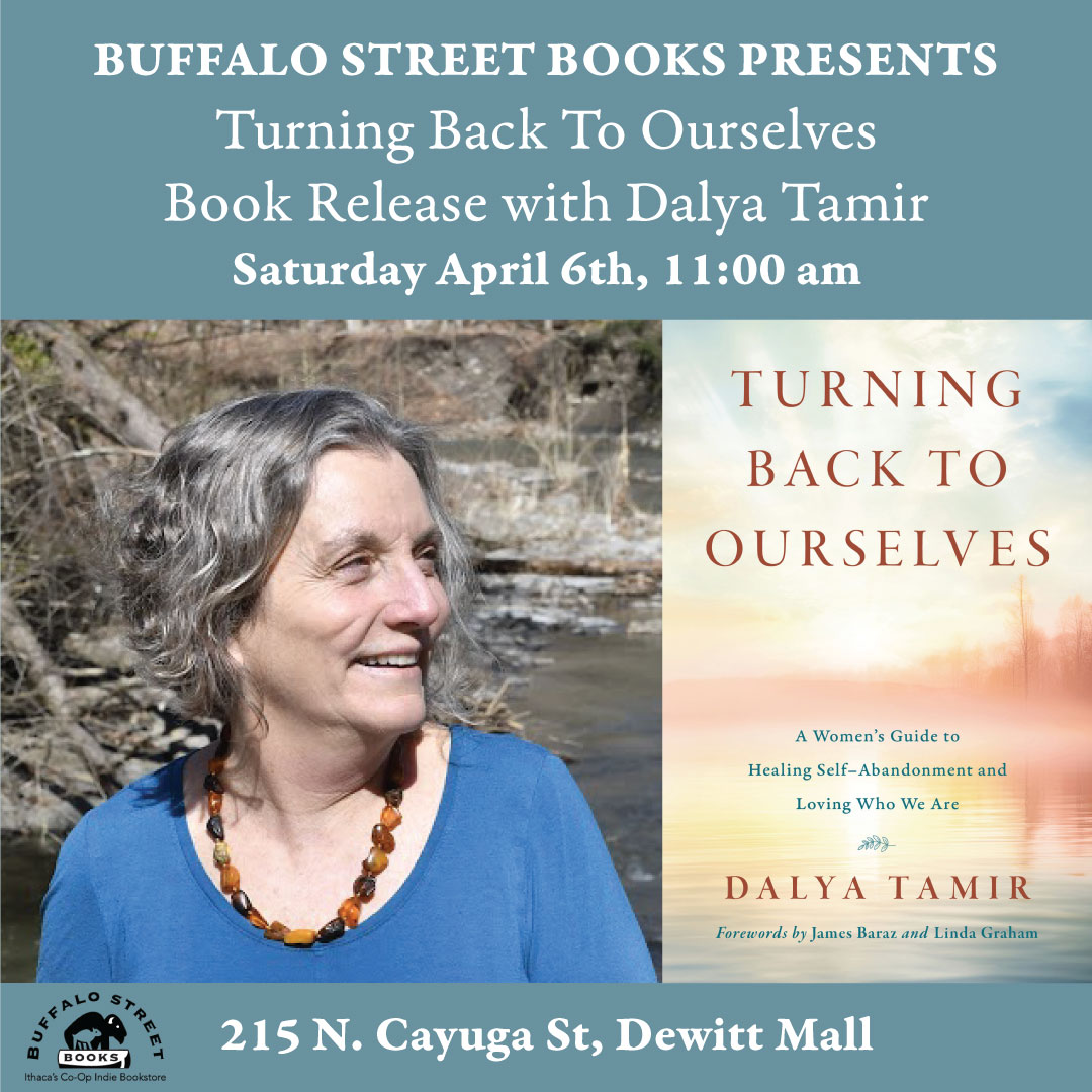 Join Ithaca local Dalya Tamir for the launch of her new book. About the Book: Turning Back to Ourselves explores the pain of self-abandonment, the mind states of self-judgment, self-doubt, and even self-hatred that women too often find themselves experiencing. Drawing on Buddhist practices of mindfulness, compassion, and lovingkindness, and on her experience as a psychotherapist, Dalya Tamir offers a ... Read More