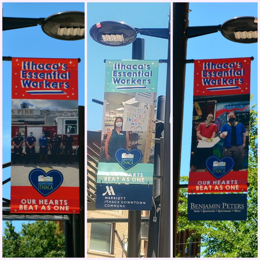 Commons banners showcase the community’s local heroes ITHACA NY, AUGUST 6, 2020 — Downtown Ithaca is going the extra mile to salute its essential workers. The Downtown Ithaca Alliance (DIA) has installed a series of 12 banners on the light poles on the Commons pedestrian mall featuring images of essential workers printed on them. DIA Executive Director Gary Ferson says the essential workers’ … Read More