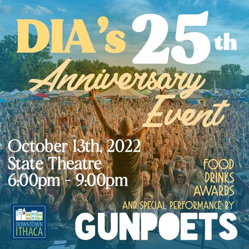 Downtown Ithaca Alliance celebrating 25 years with a big party next month at State Theatre Anniversary party open to the public & featuring food tastings, an awards ceremony, live music, and more The Downtown Ithaca Alliance is celebrating its 25th anniversary this year. To honor this significant milestone and celebrate downtown’s many achievements, its team is hosting a big party next month. … Read More