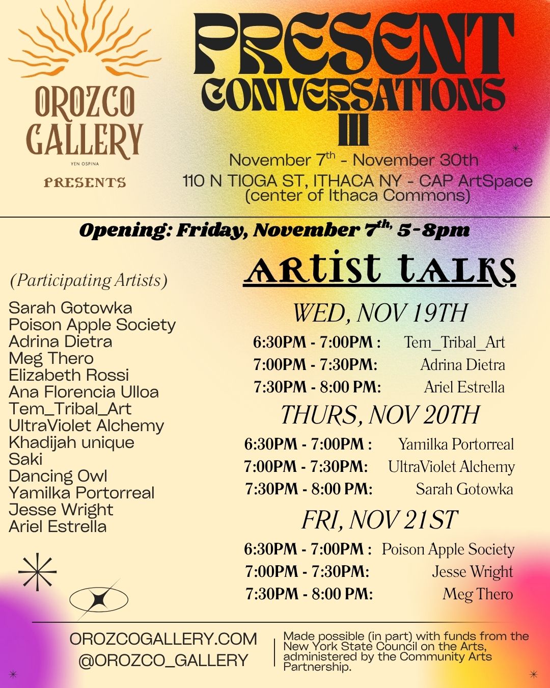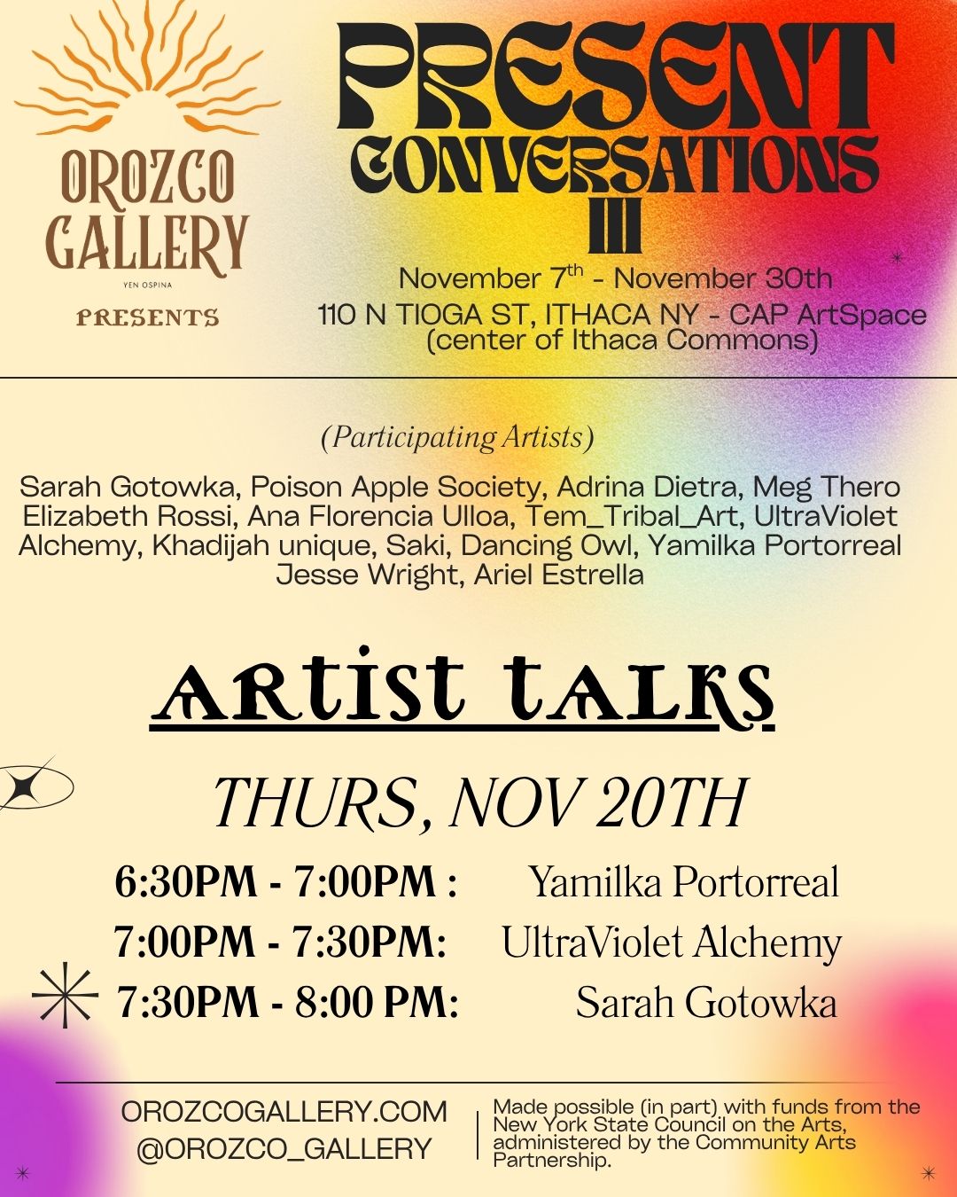 DANCE PARTY WITH APARECE ποΈ Saturday, May 31st | β° 7 PM β 12 AM | π 115 S Cayuga St, Ithaca, NY Join us for a high-energy dance party to close out the We Are La Voz pop-up gallery space at Orozco Gallery Ithaca! The night will be filled with Latin music, as Aparece, a Peruvian-American DJ, accordionist, and ... Read More