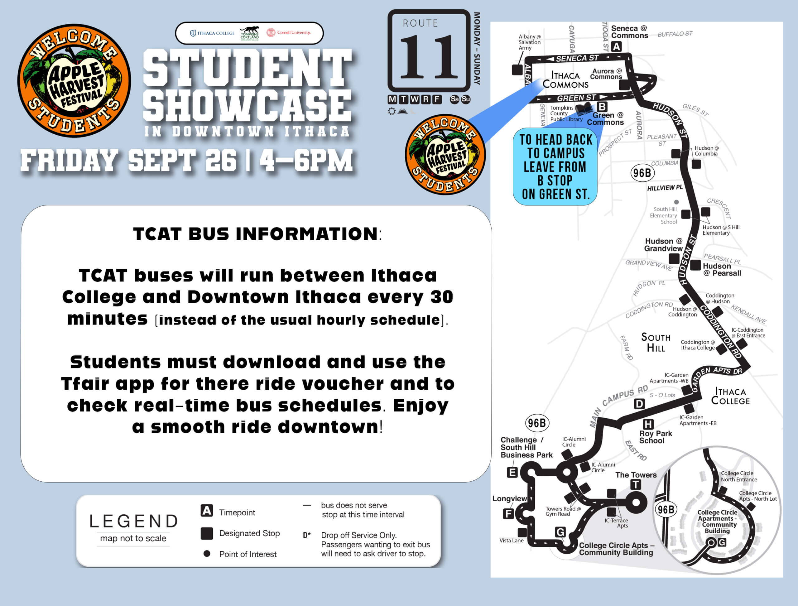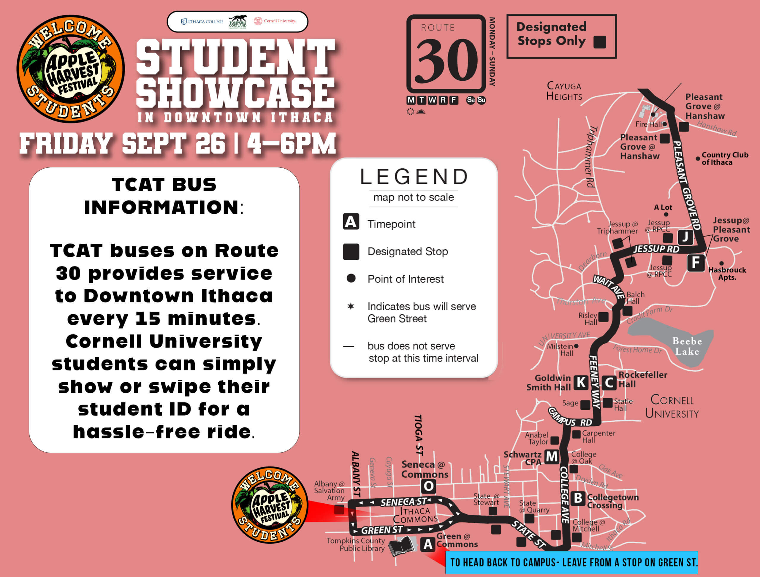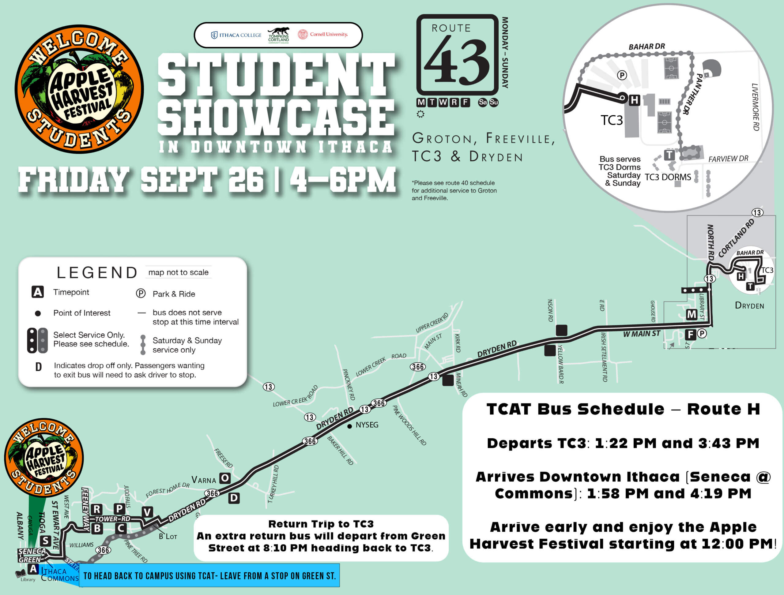 Explore stages, vendors, food courts, restrooms, first aid, bike valet, garage parking, and TCAT stops. The interactive map updates in real time and works great on mobile.